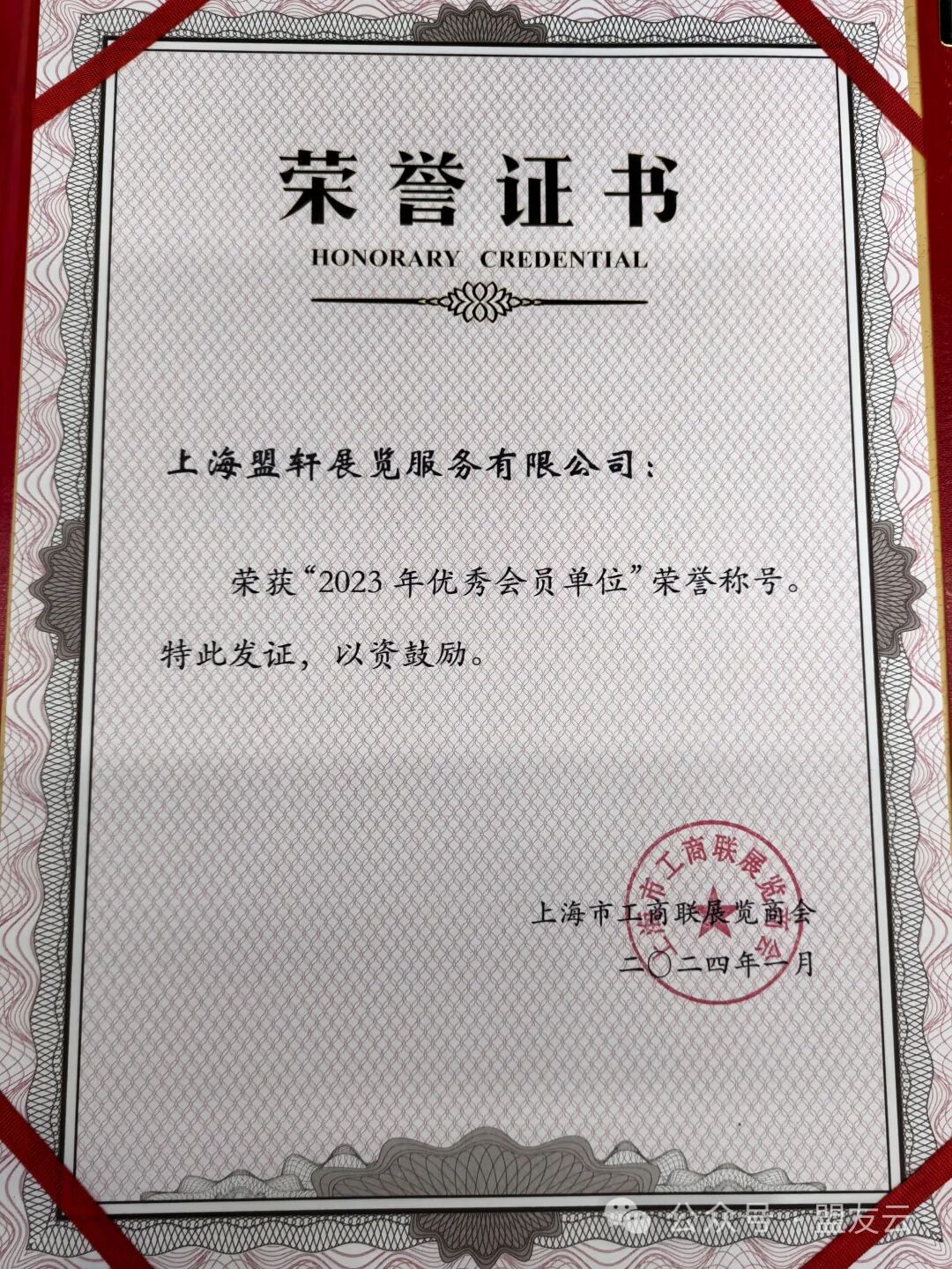 2024年1月09日下午,由上海工商联举办的“融产业·促发展”2023年上海市工商联展览商会会员大会暨融产业·促发展--第二届会展产业发展论坛召开,上海盟轩展览服务有限公司获得表彰,由公司常务副总——邢思振先生代表上海盟轩展览服务有限公司上台领奖。